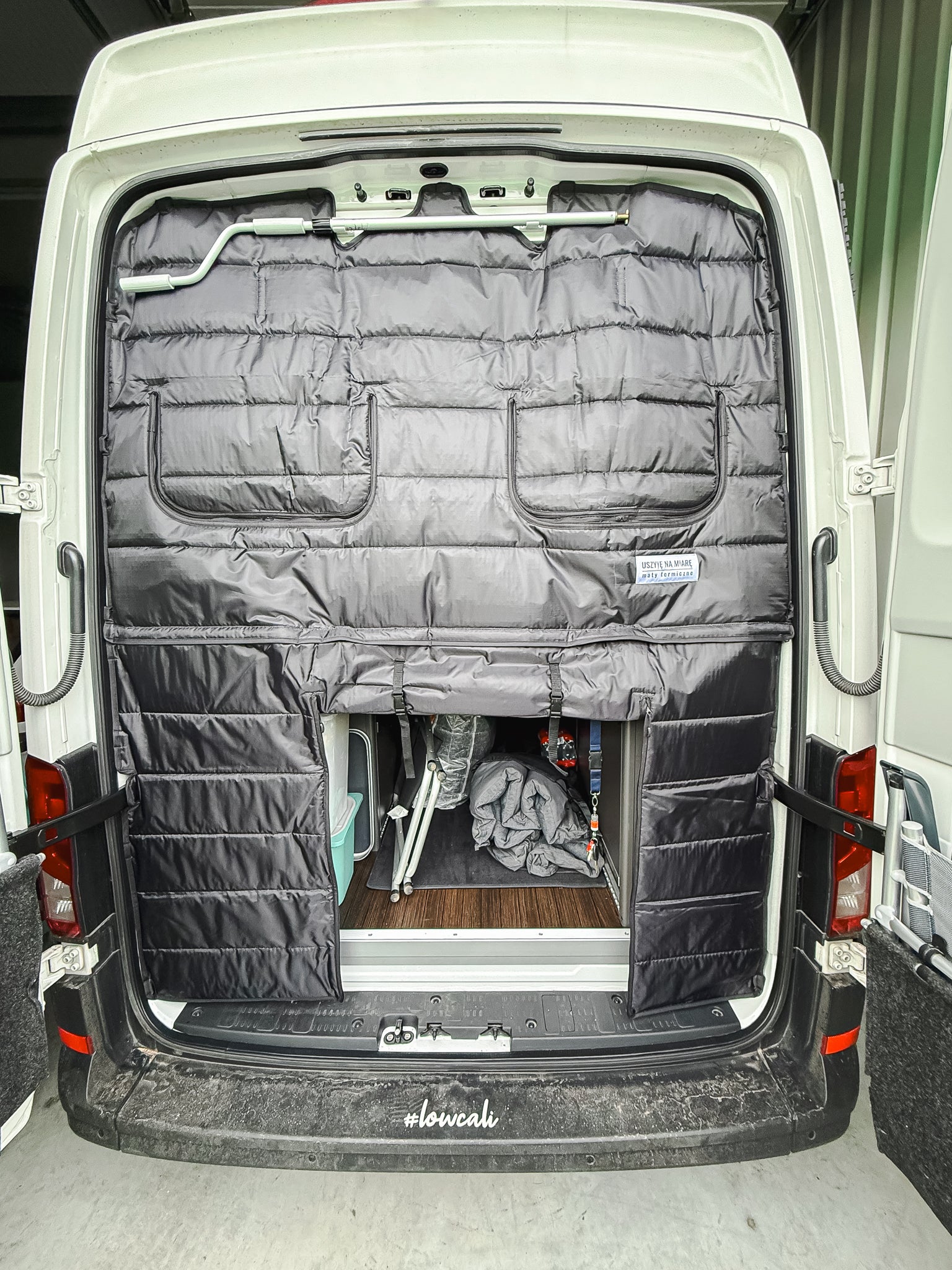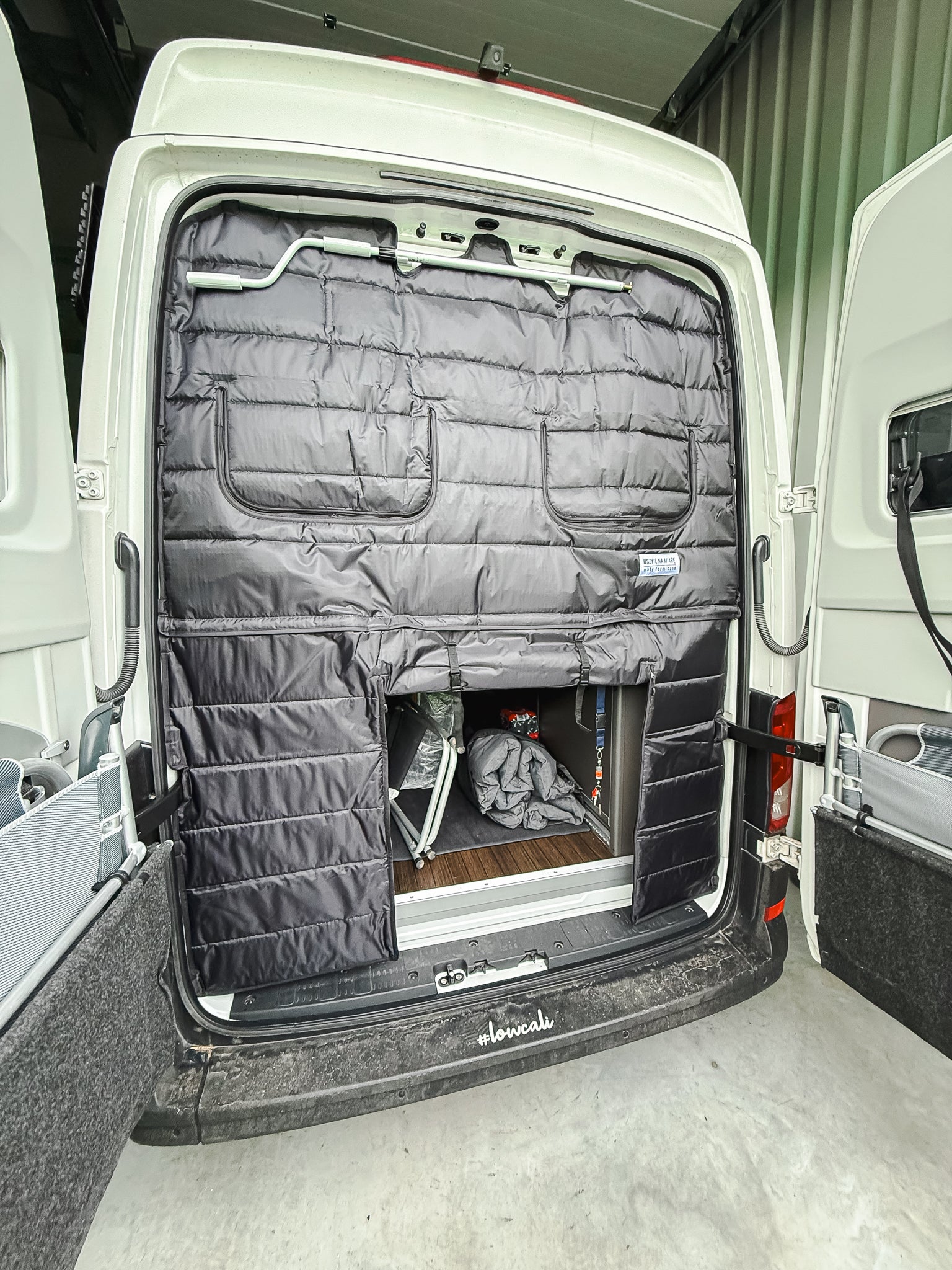 Der Vorhang wird passgenau für die Hecktüren deines VW Grand California, Crafter oder MAN TGE gefertigt und mit starken Magneten befestigt. Dadurch sitzt er stabil, lässt sich im Handumdrehen anbringen und genauso schnell wieder entfernen, ganz ohne Bohren oder Schrauben.